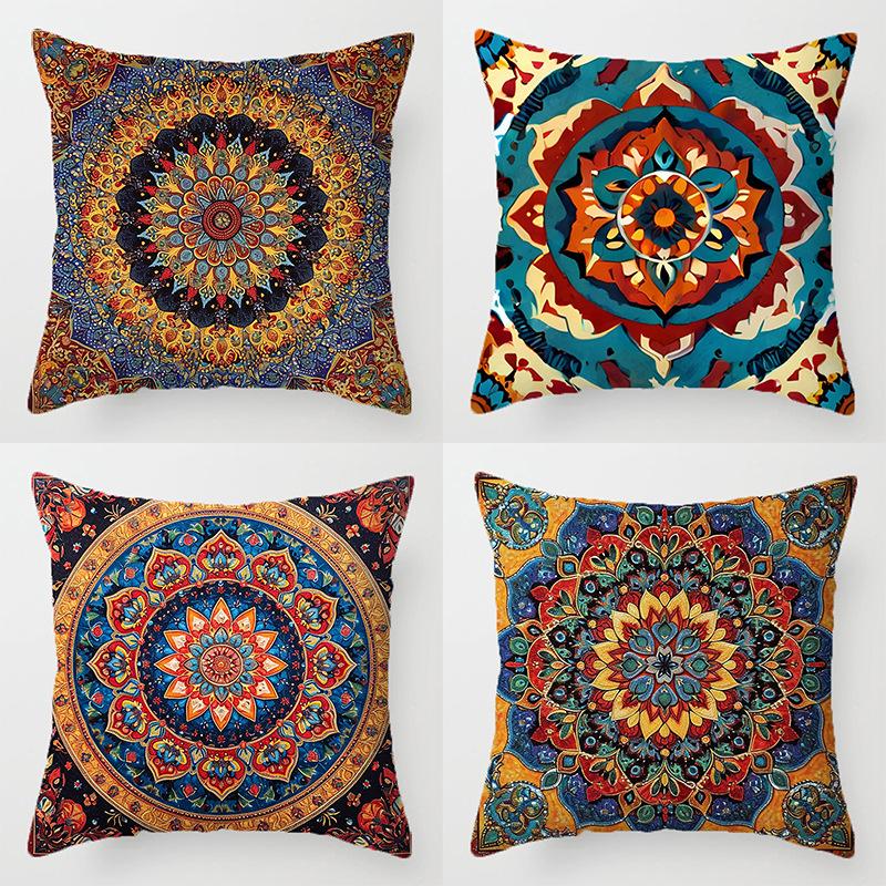 Home Decor Colorful Mandala Patterned Digital Print Pillowcases Pattern Cushion Cover Suitable for Sofa Bedroom Car Pillow Cover