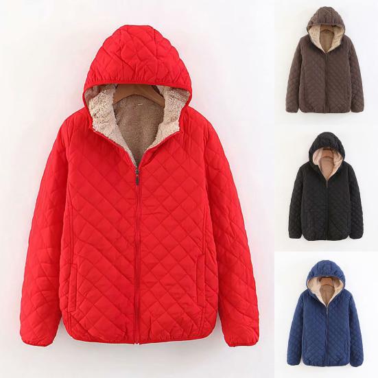 Women Coat Solid Color Hooded Plush Thicken Winter Jacket for Work