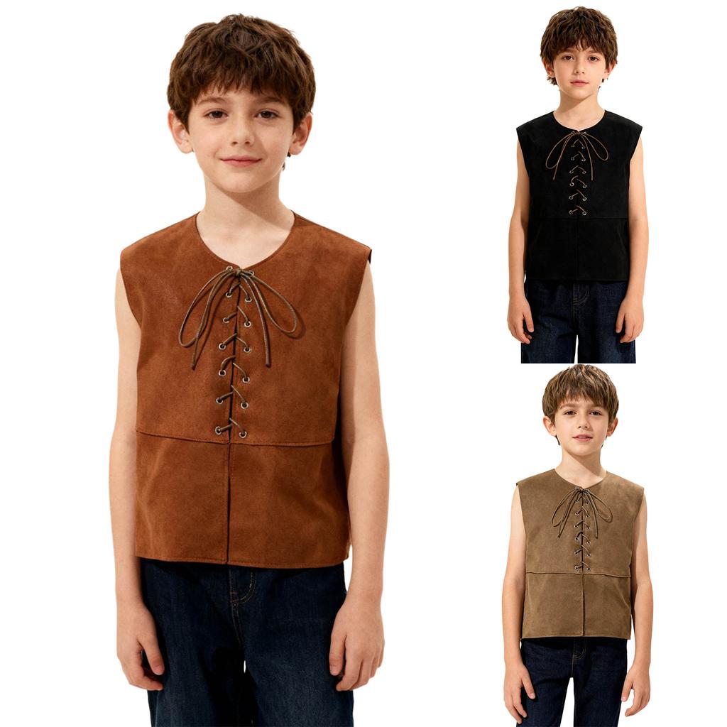 Girls Boys Halloween Vest Renaissance Medieval Gothic Waistcoat Kids Role Play Costume