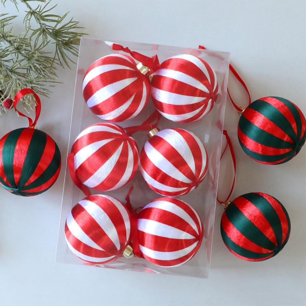 6Pcs 8Cm Christmas Ball Ornaments Red White Striped Balls Christmas Tree Hanging Pendant Xmas Tree Holiday Wedding Party Decor