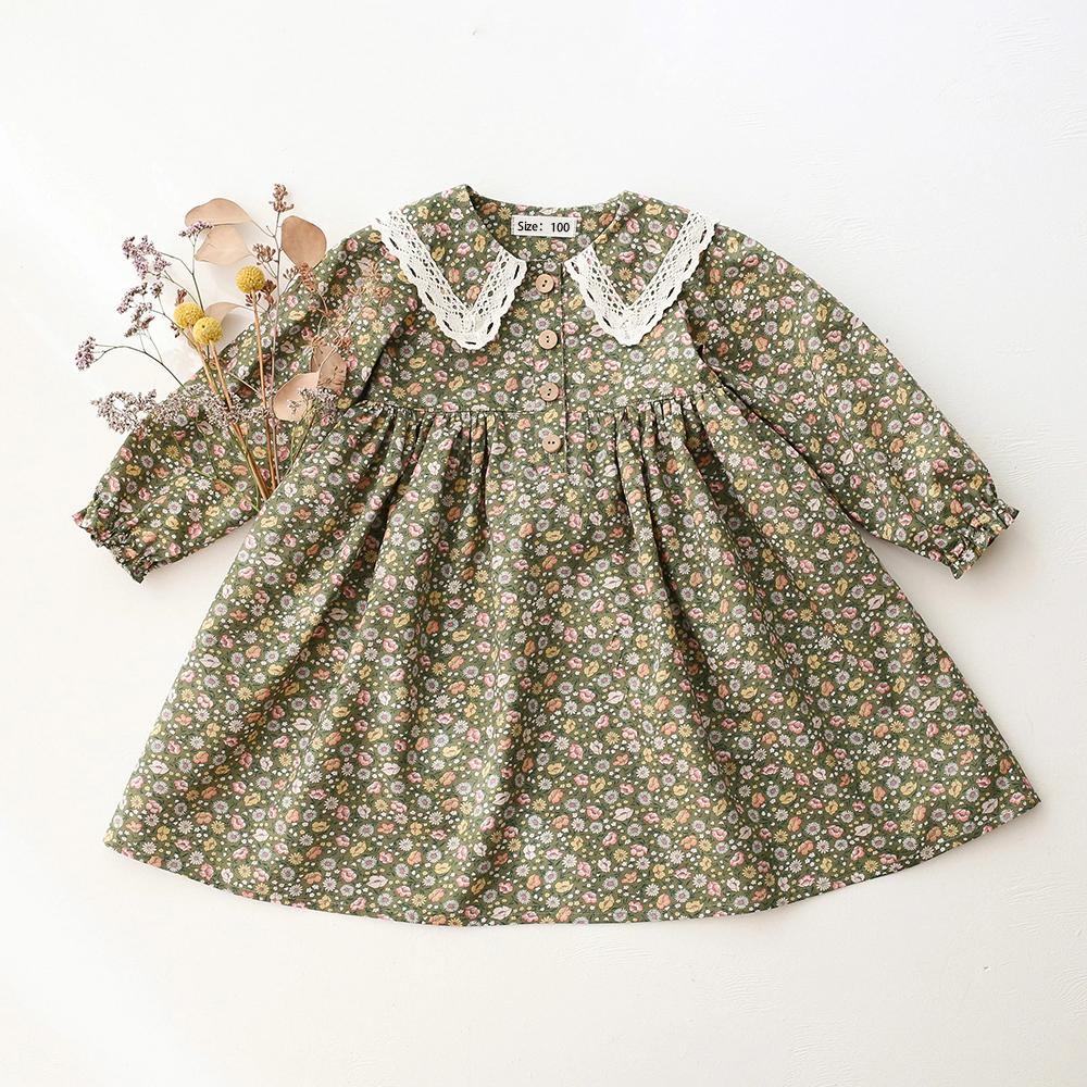 Spring Vintage Floral Kids Girl Dresses Toddler Girl Long Sleeve Dresses Children Baby Clothes