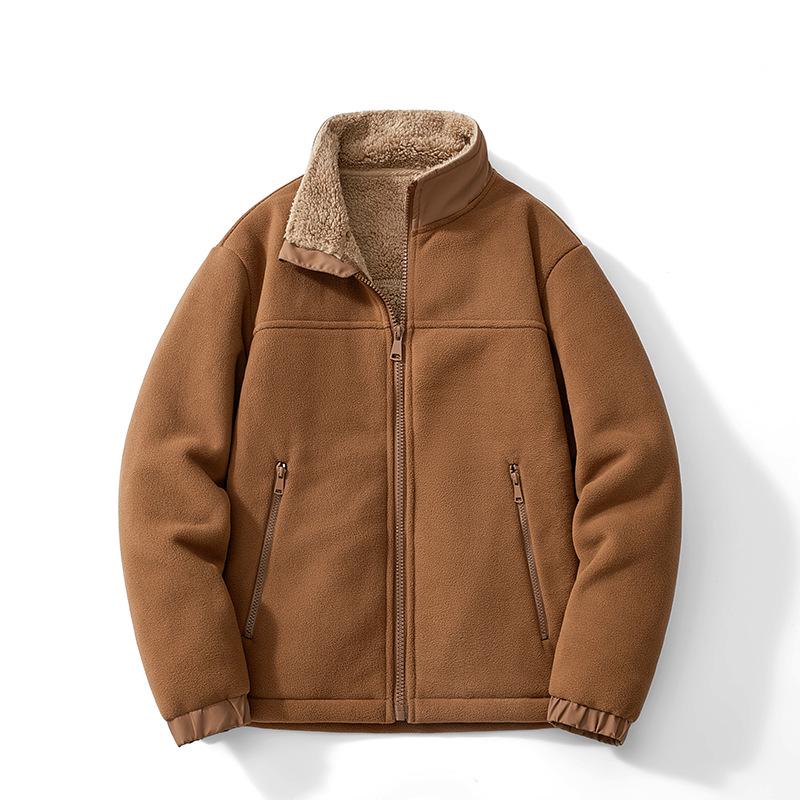 Men's Fleece-Lined Stand Collar Windbreaker - Warm Lambswool Inner Layer for Autumn and Winter