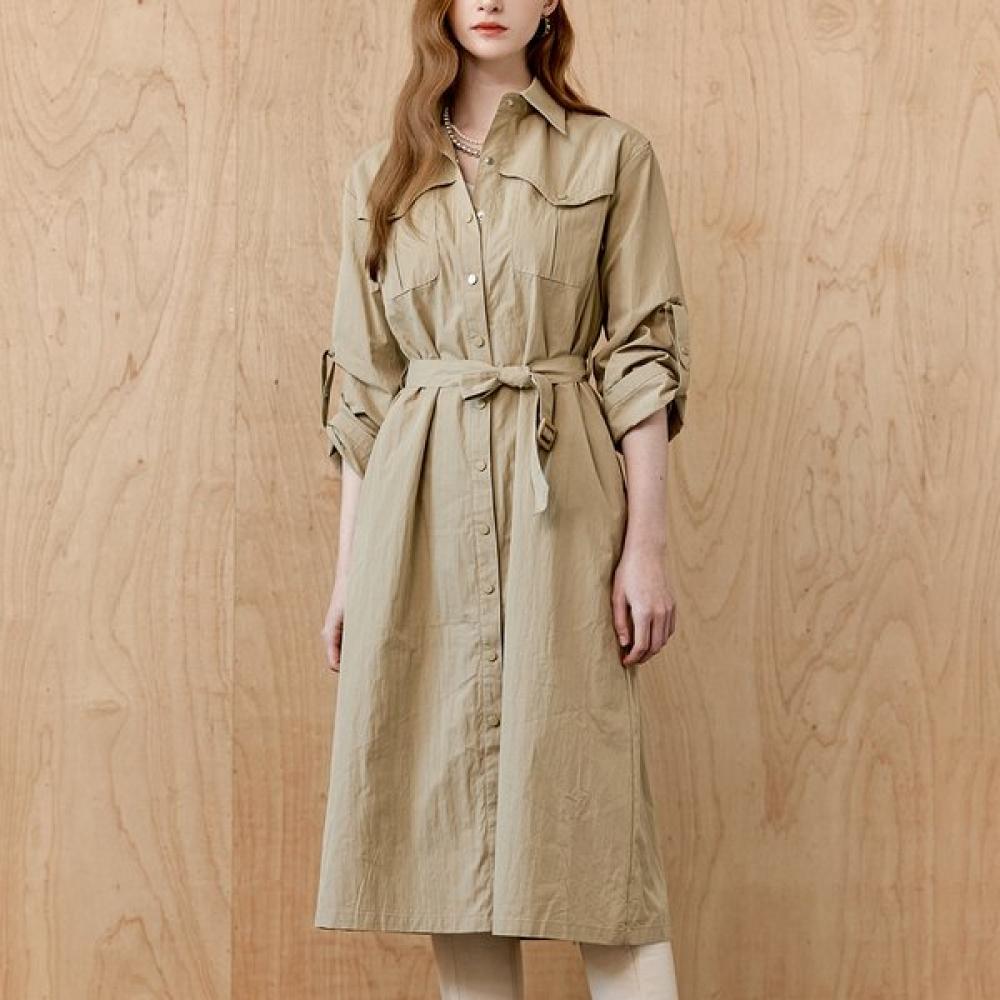 MAXZA Belted Trench Shirt Dress With Out Pockets Zd05qp003on