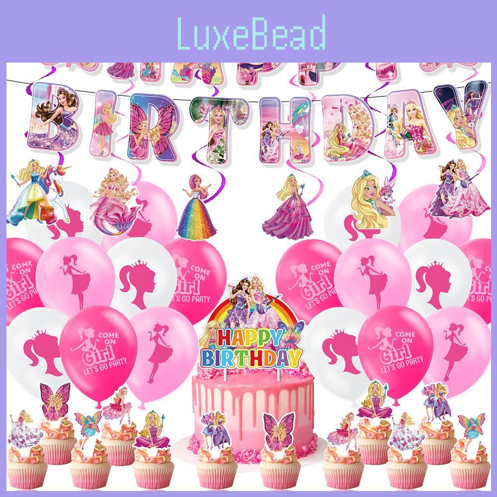 Barbie Birthday Party Balloon Set With Banner 4 Pieces Includes Banner 18pcs Balloons 12pcs Small Inserts 1 Large Insert