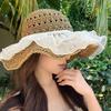 Lace Straw Sun Hat Children Large Brim Summer Breathable Straw Hat Seaside Full Face Shade Beach Hat Tide