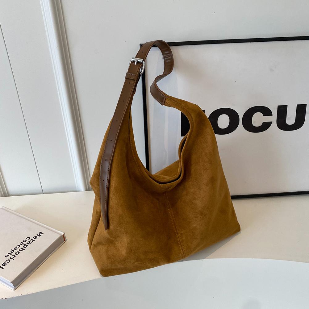Women Suede Shoulder Bag Stylish Crossbody Bag Large Capacity Casual Tote Purse Solid Color Adjustable Strap Daily Commuting Bag
