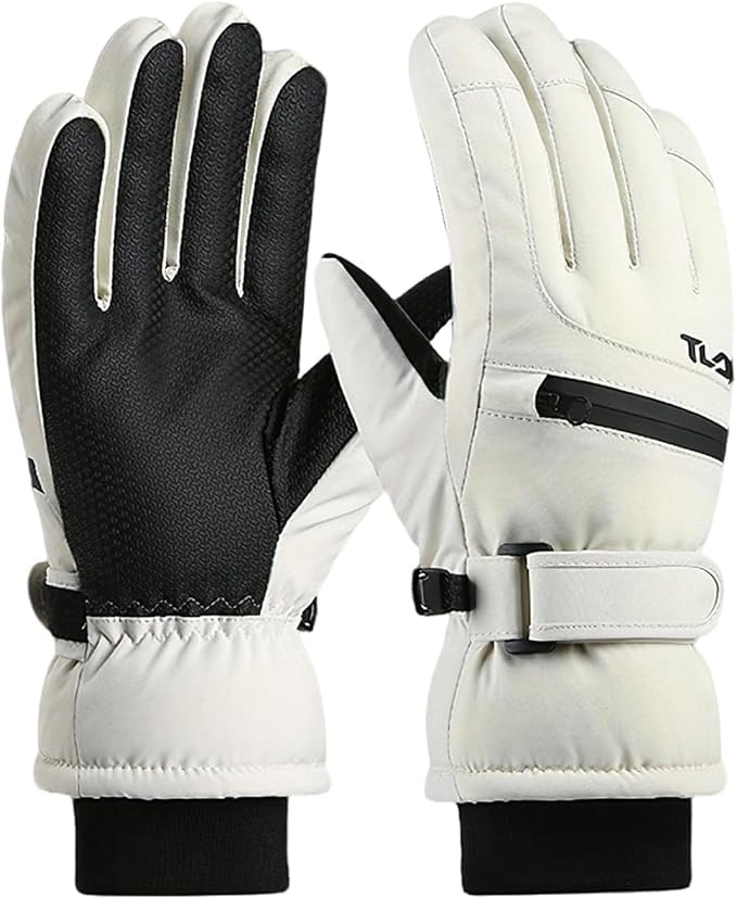 [Convenient Touchscreen Operation & Storage Pocket] The touchscreens on all five fingers allow you to easily operate your smartphone or tablet without removing the gloves. This makes taking photos on snowy mountains a breeze. Being able to smoothly operate your smartphone while wearing the gloves is extremely convenient in cold weather! Another plus is the zippered pocket on the back of the ski gloves, perfect for storing small items.