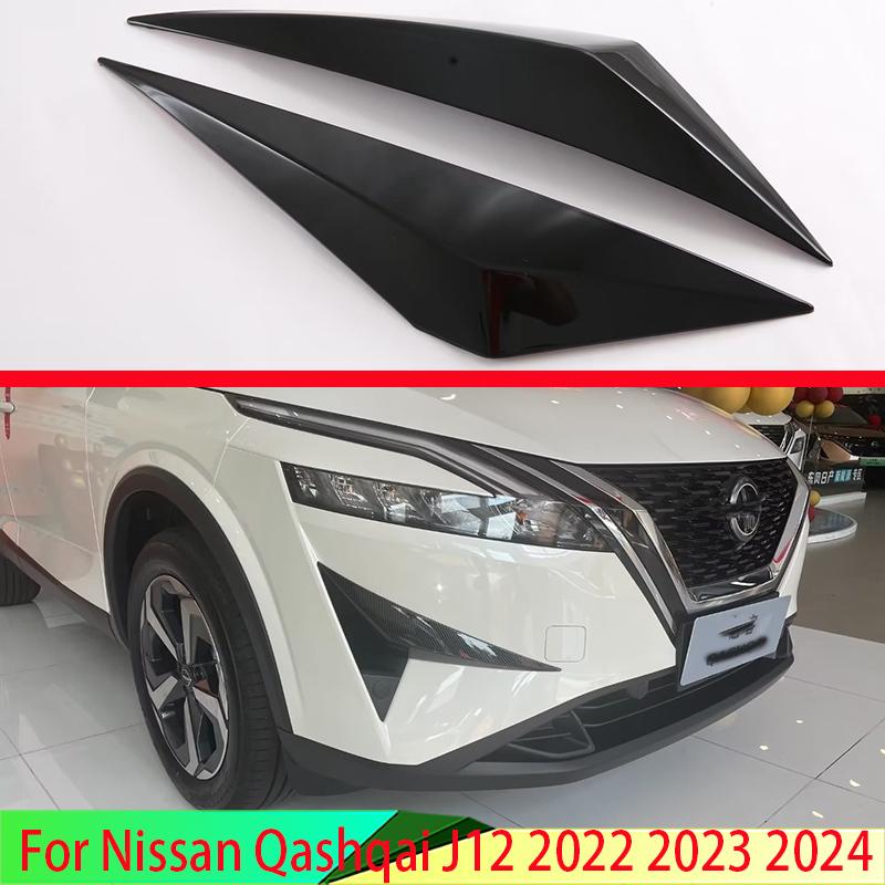 For Nissan Qashqai J12 2024 Car Accessories Piano Black Front Fog Light Trim Bezel Wind Shape