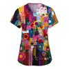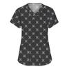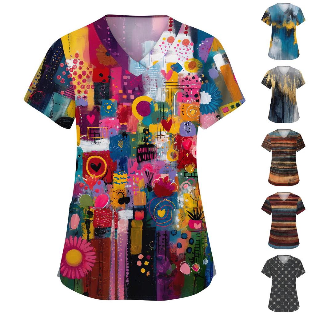 Women's Fashion V-neck Short Sleeve Workwear With Pockets Printed Tops