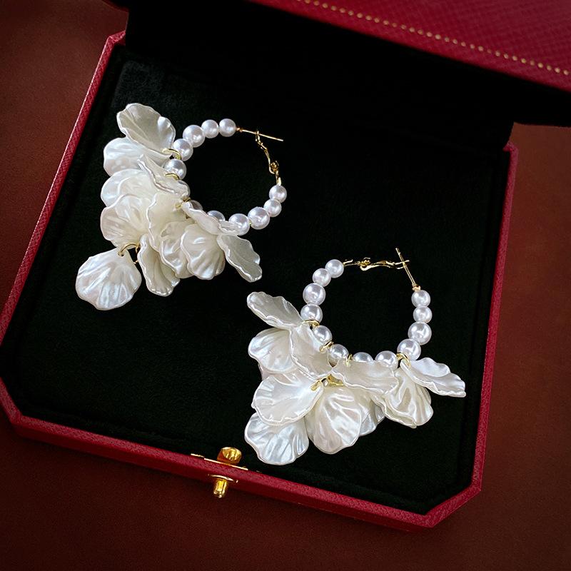 Pearl Imitation Shell Petals Geometric Silver Needle Earrings French Vintage Ins Niche Earrings