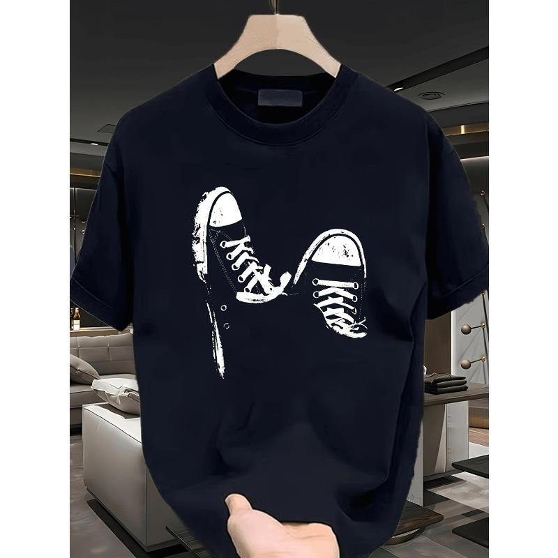 European Sizes Men' Sneaker Print T-Shirt - Casual Short Sleeve Round Neck Tee with Sneaker Graphics, Breathable & Durable Fabric