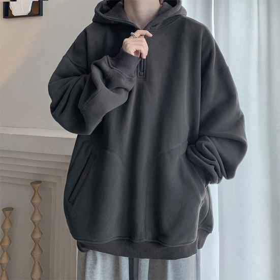 Fall Spring Men Hoodie Half Zipper Hooded Pockets Long Sleeves Loose Elastic Cuff Pure Color Pullover Thick Warm Daily Wear Top