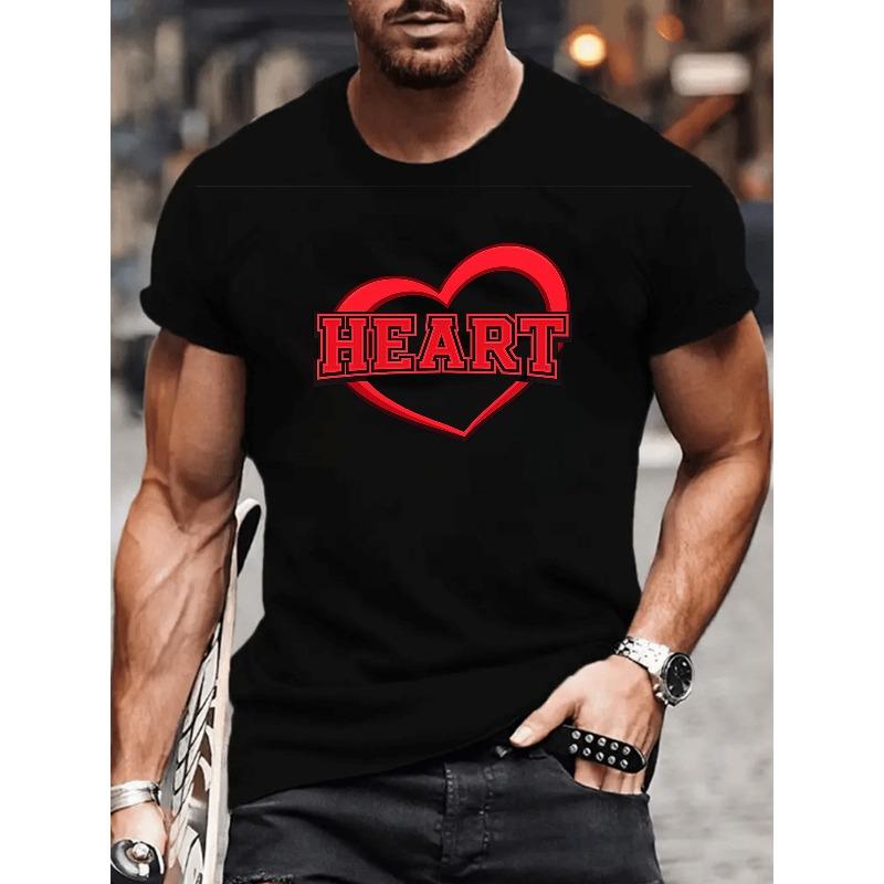 European Sizes Red Heart Art | Easy and Fashionable Men'S Round-Neck Short-Sleeved T-Shirt with Print Pattern, Light and Comfortable, Casual Fit