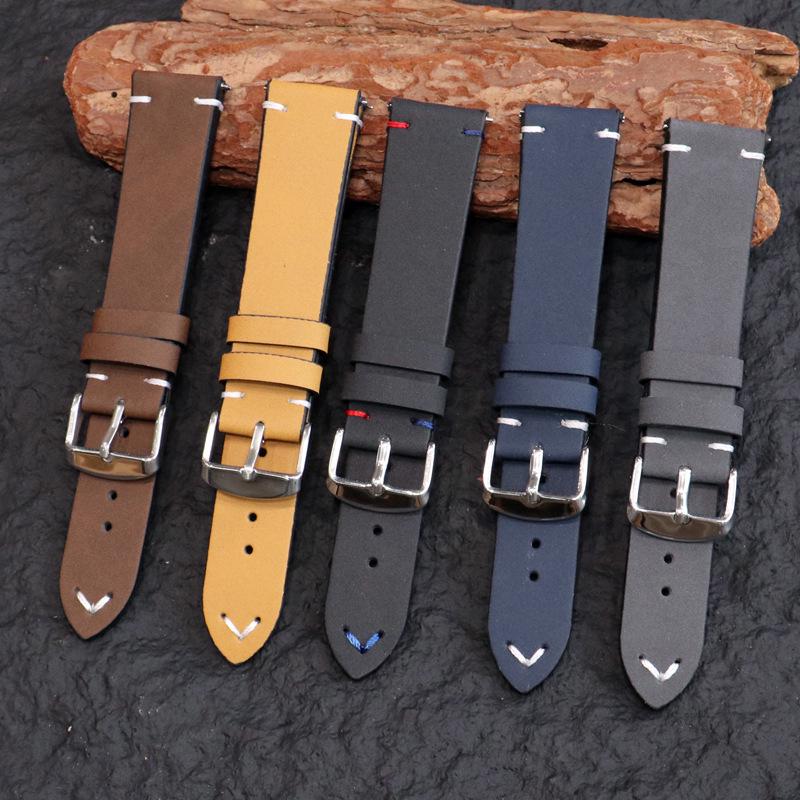 Universal Quick Release Matte Leather Watch Strap for Huawei - Retro Crazy Horse Leather with Apricot Tail, Sizes 18/20/22