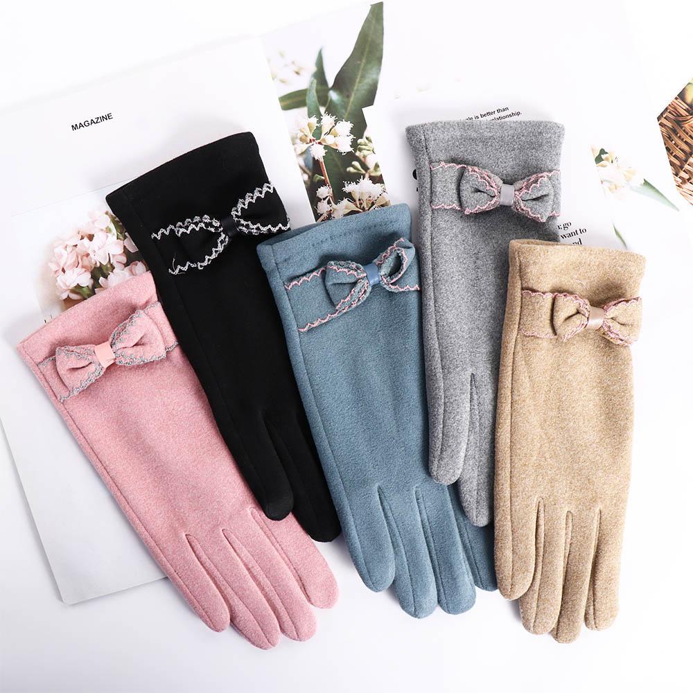 Bow Cold Protection Gloves German Fleece Korean Style Mittens Women's Gloves