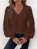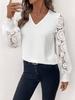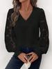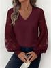 V-Neck Lace Sleeve Women's Pullover Shirt - Available In White, Black, and Dark Red