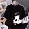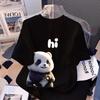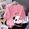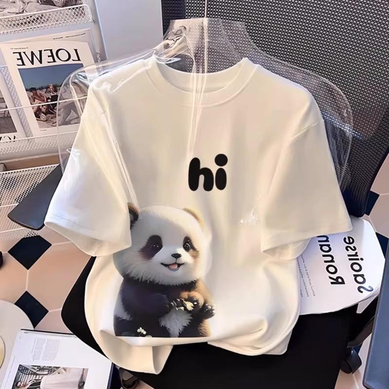 Embrace a fun and breezy style with this adorable women's loose short-sleeve t-shirt, featuring a delightful cartoon panda print. Crafted from a soft and comfortable artificial silk material, the t-shirt offers a luxurious feel with its milk silk fabric. Designed with a round neckline, this casual tee provides a relaxed fit perfect for summer outings. The charming print decoration adds a playful touch to your wardrobe, making it a go-to choice for a laid-back and cheerful look.