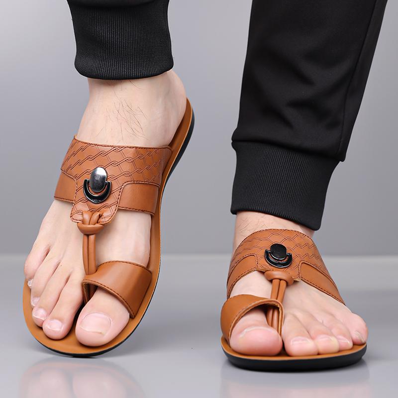 Men Black Leather Slippers Simple Flats Summer White Flip Flops Outdoor Sandals Open Toe Beach Shoes Plus Size