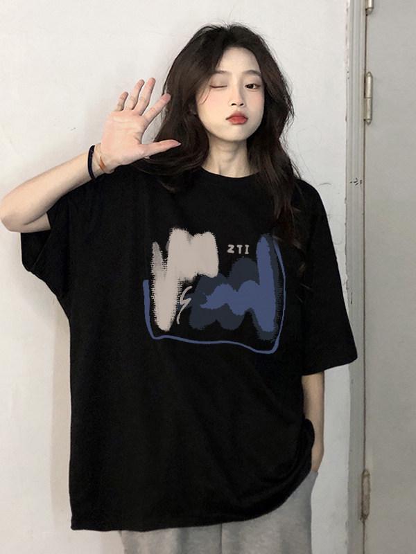 Elevate your summer wardrobe with this stylish and versatile T-shirt made from 100% pure cotton. Designed in a loose fit, this plus-size top features short sleeves and a classic round neckline for ultimate comfort. Its trendy Hong Kong style adds a unique flair, beautifully accentuated by a chic letter decoration. Whether you're dressing up for a casual outing or enjoying a relaxed day at home, this T-shirt will keep you both fashionable and comfortable.