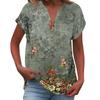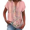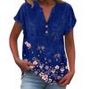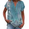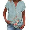 Women's Fashionable Casual Loose-Fit Short-Sleeved Button-Up V-Neck Printed T-Shirt Top