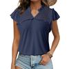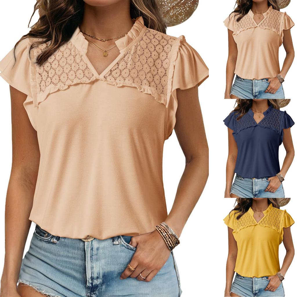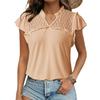 Women's Casual V-Neck Pleated Patchwork Lace-Trimmed Short-Sleeve Top With Hollow Ruffles