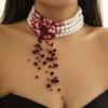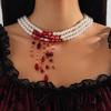 Gothic Pearl Necklace Choker Creative Halloween Blood Trickle Collarbone Necklace