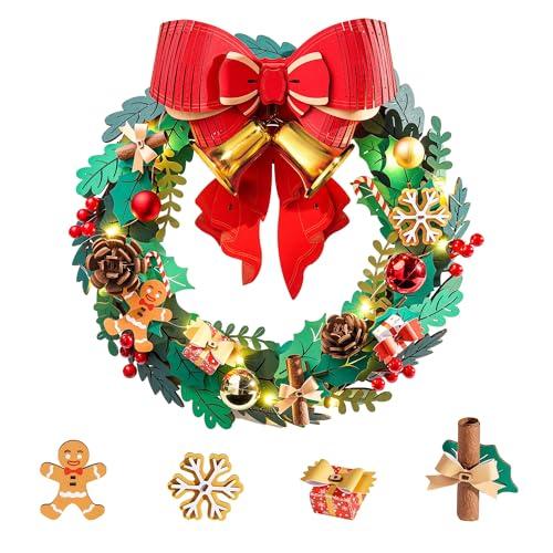 ROBOTIME 3D Wooden Puzzle with LED Lights - Christmas Wreath Assembly Kit - DIY Craft Kit - Home Decor - Educational Toy - Suitable for Children and A