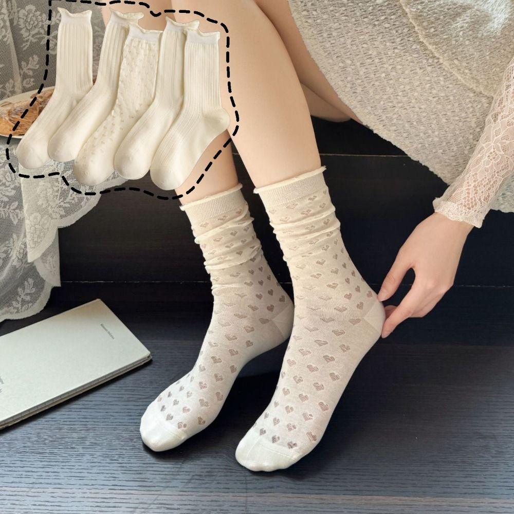 2Pairs Heart Sweet White Socks Hollow Out Ruffle Tube Socks Women Mid-calf Cotton Socks Women