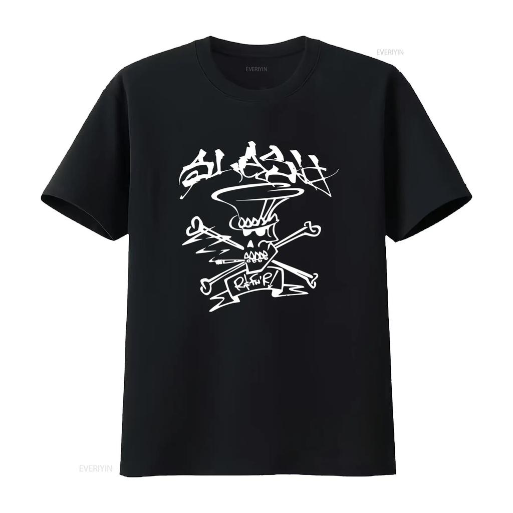Slash Skull Crossbone Drawing R FNR Mens Heavy Metal Music Merch T Shirt Vintage Washed Casual Stretched Unisex Versatile