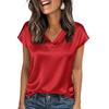 Women Summer T-shirts V-neck Short Sleeve Satin Tee Tops Ladies Casual Top Shirt