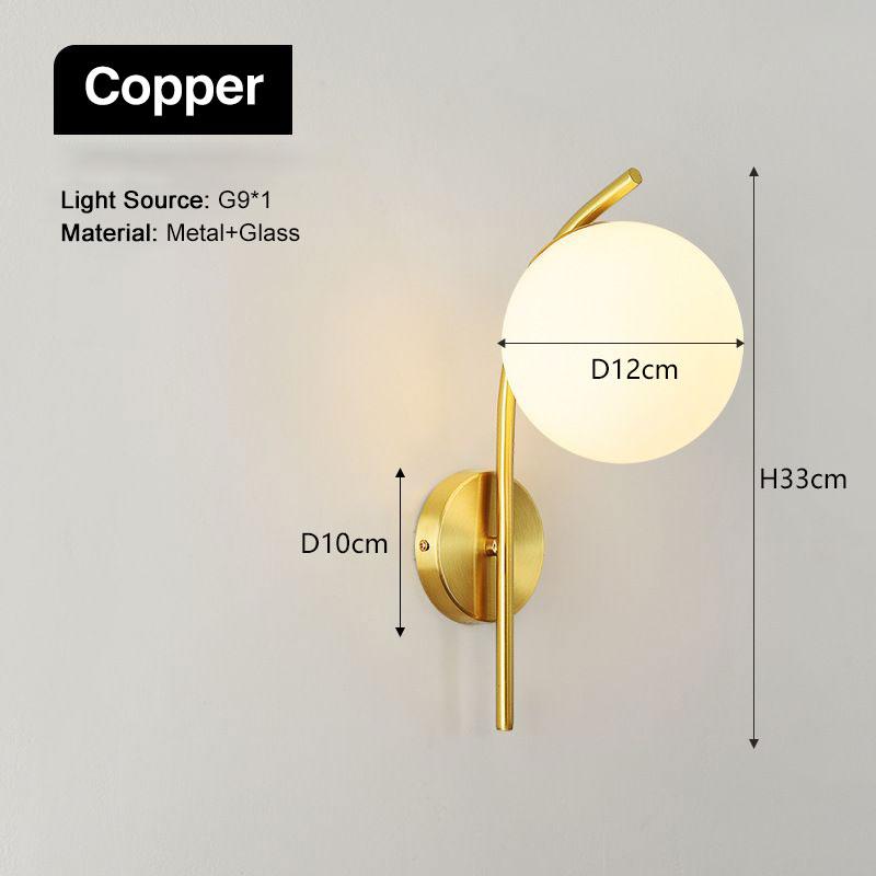 Glass Ball LED Wall Lights Suitable For TV Sofa Background Corridor G9 Base Copper Black Metal Wall Lamp Modern Lighting Fixture