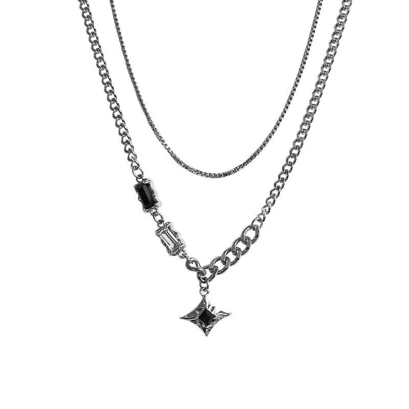 Double-layer Stacked Tetragonal Star Necklace Women's Cold Wind Niche Light Luxury High-end Versatile Couple Collarbone Chain