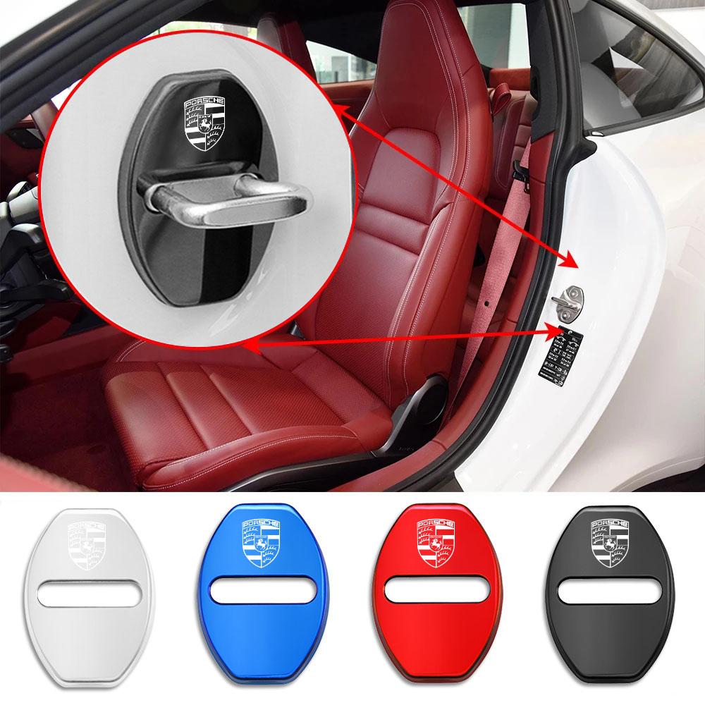 4Pcs 3D Car Door Lock Cover Accessories For Porsche Panamera Taycan 911 718 Macan Cayenne Boxster Cayman 918 Pajun