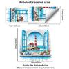 3D Faux Window Lighthouse Seascape Wall Sticker Self-Adhesive Removable Mediterranean Style Living Room Bedroom Background Wall Home Decor