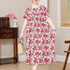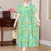Plus Size Elegant Loose Dresses for Women Oversize Short Sleeve Vintage Print Long Dress Casual Middle-aged Women's Clothing