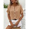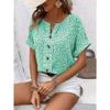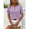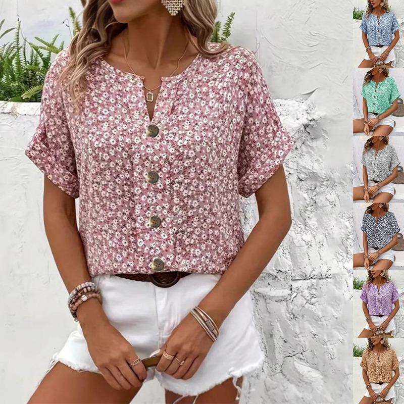 Summer Printed Women's T-shirt Elegant Floral Buttons Short Sleeve Loose Casual T-shirts Women Fashion Vintage Office Ladies Pullover Tee Tops New