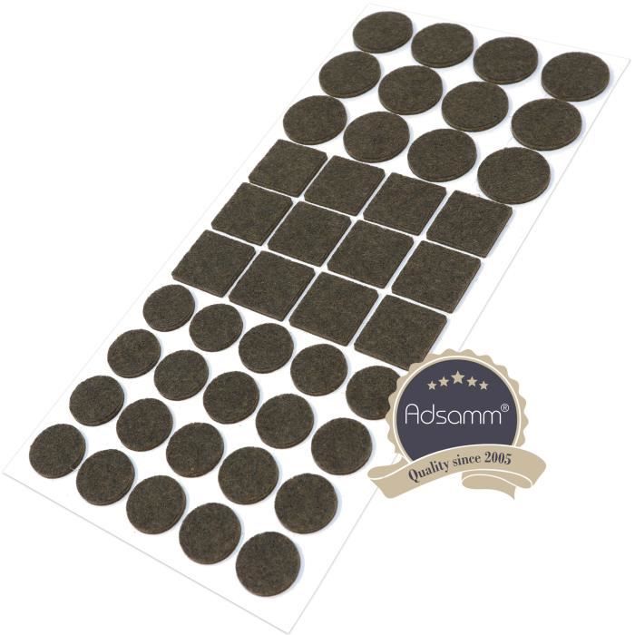 Patins en feutre - ADSAMM - 44 pcs - marron - ép. 3,5 mm - tailles variées (Ø28/Ø20/25x25 mm)