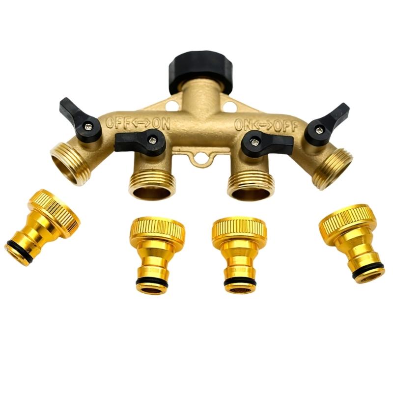 Strong Brass 4 Port Liquid Device Includes 4 Aluminum 3/4 Inch Threaded Nipples For Outdoor Usage