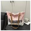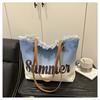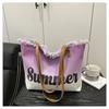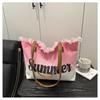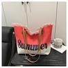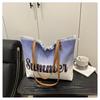 Summer Large Capacity Women Canvas Shoulder Bags Casual Tassel Design Ladies Beach Tote Bag Ctrast Color Letter Female Handbag