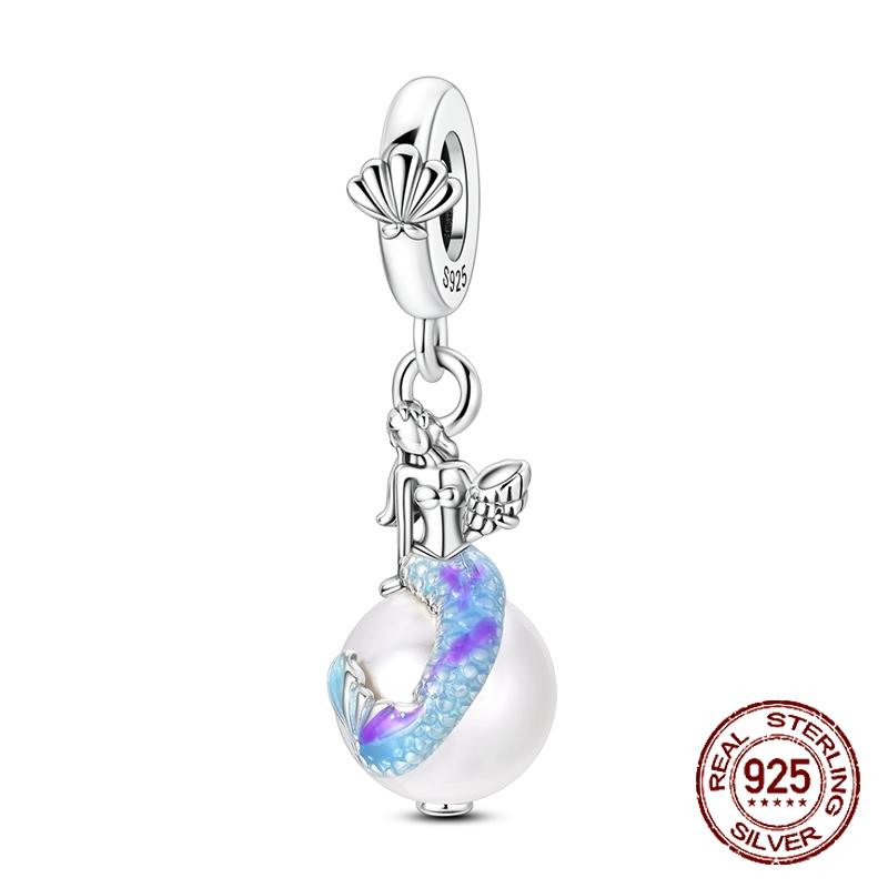 Copper Elegant Exquisite Mermaid Pearl Pendant Charm Compatible With Authentic Charm Bracelets Women Do It Yourself Jewellery Gift