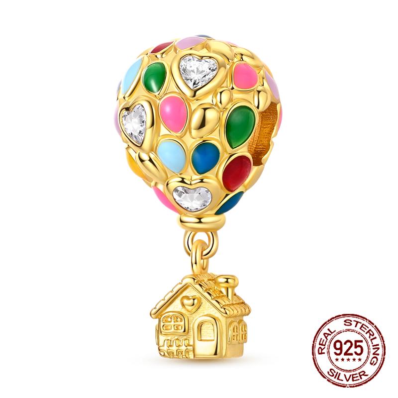 Copper Classic Golden Iridescent Hot Air Balloon Pendant Charm Compatible With Authentic Charm Bracelets Women Do It Yourself Jewellery Gift