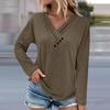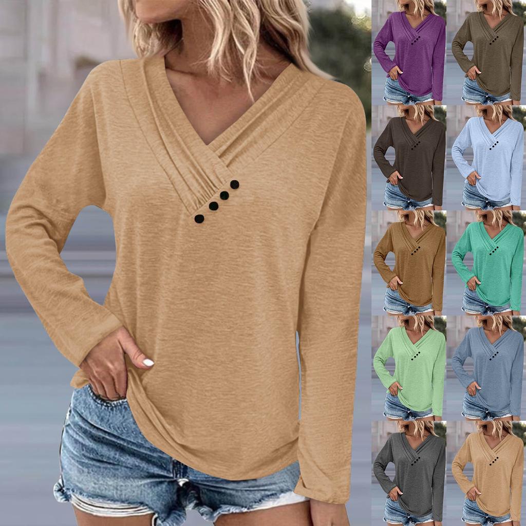 Women's Fashion Casual Color Chest Panel Ruched Button V Neck Long Sleeve Ladies Long Top