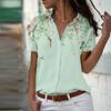 Women's Fashion Casual Printed Button Lapel Short Sleeve Shirt Tops Blouse