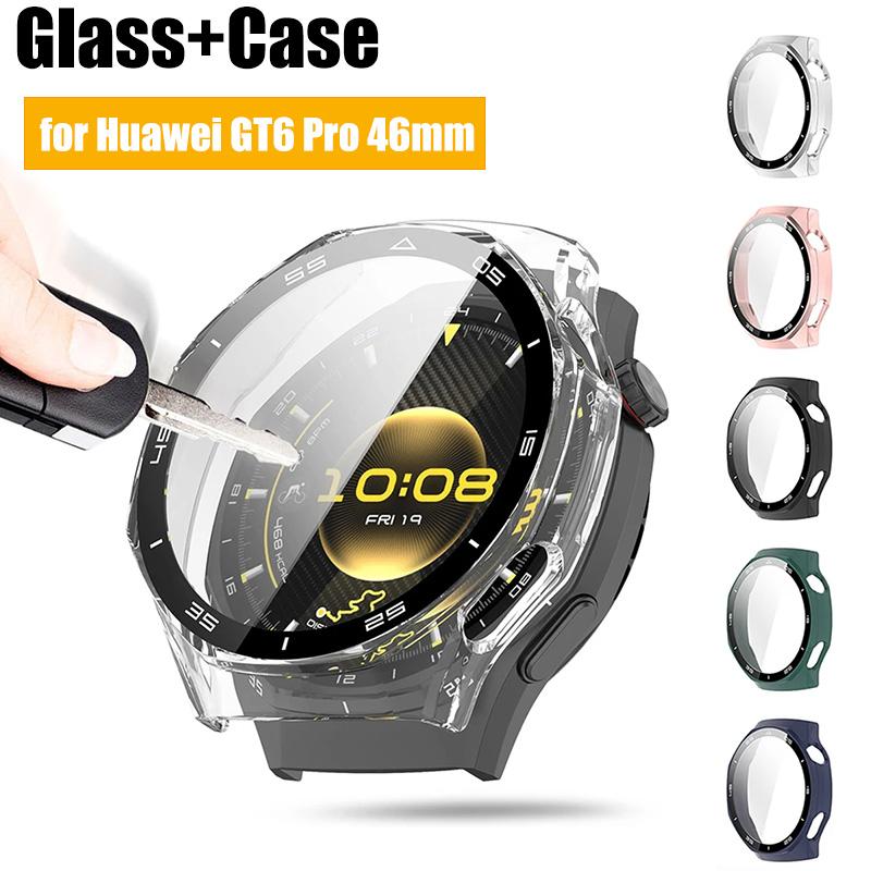 Glass+Case for Huawei Watch GT6 Pro 46mm Glass Anti-scratch Screen Protector & Hard PC Protective Bumper for GT 6 Accessories