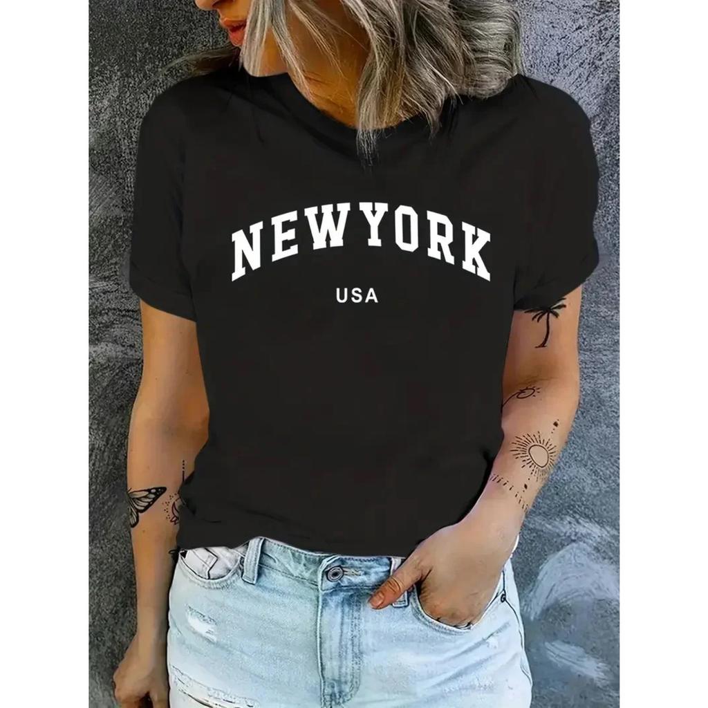 NEW YORK USA Letter Graphic Versatile T-shirts, Fashion Loose Casual Sports Summer Crew Neck Short Sleeved Top, Women's Tops