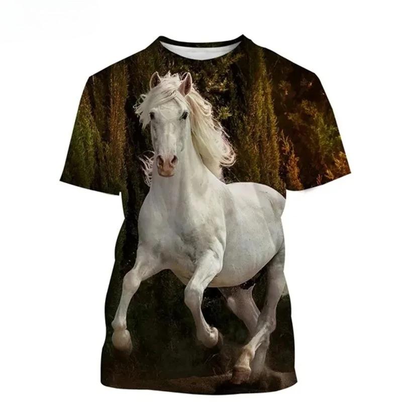 3D Print Animal Horse Graphic T-shirt for Men Women Casual Personality Mens Short Sleeve Tee Tops Streetwear Kids Animal Tshirts