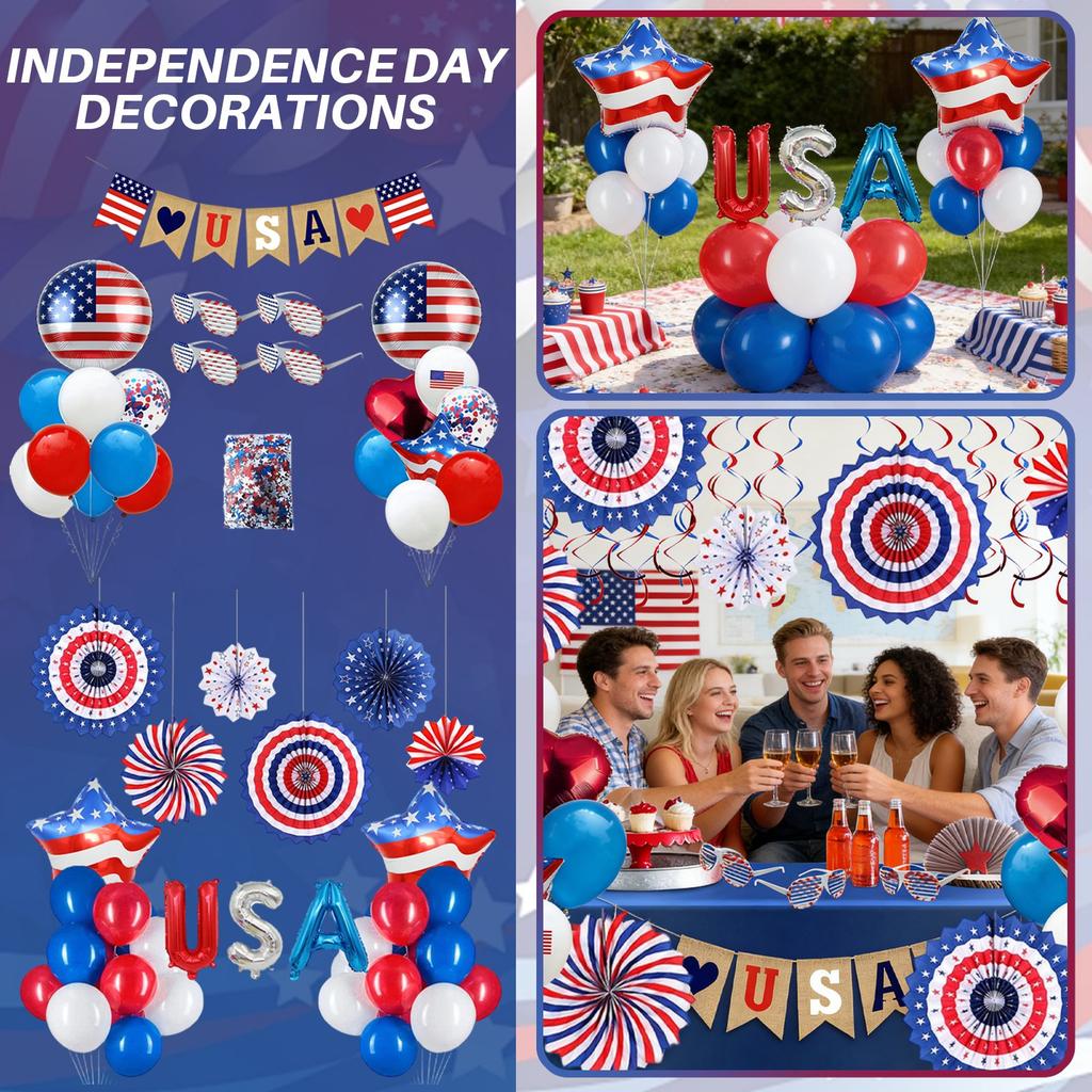 American Independence Day Decoration Set Party Decoration Paper Fan Flower Set