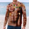 Christmas Chest 3D Print Long Sleeve Sweater Creative Couple Winter Round Neck Party Coat
