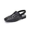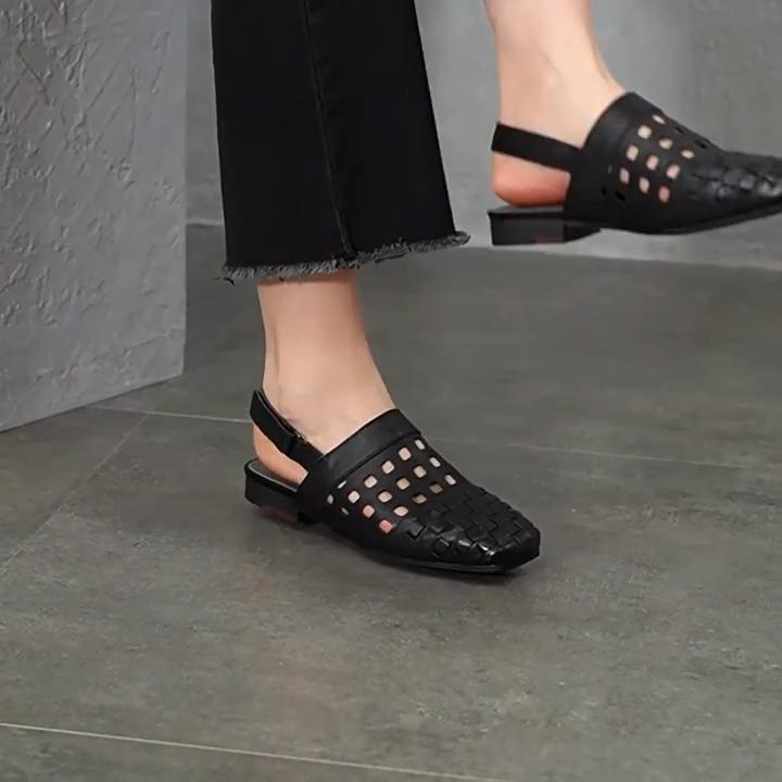 Johnature Real Leather Low Heel Sandals Woven Hollow Out Versatile Square Toe Commuting Women's Shoes