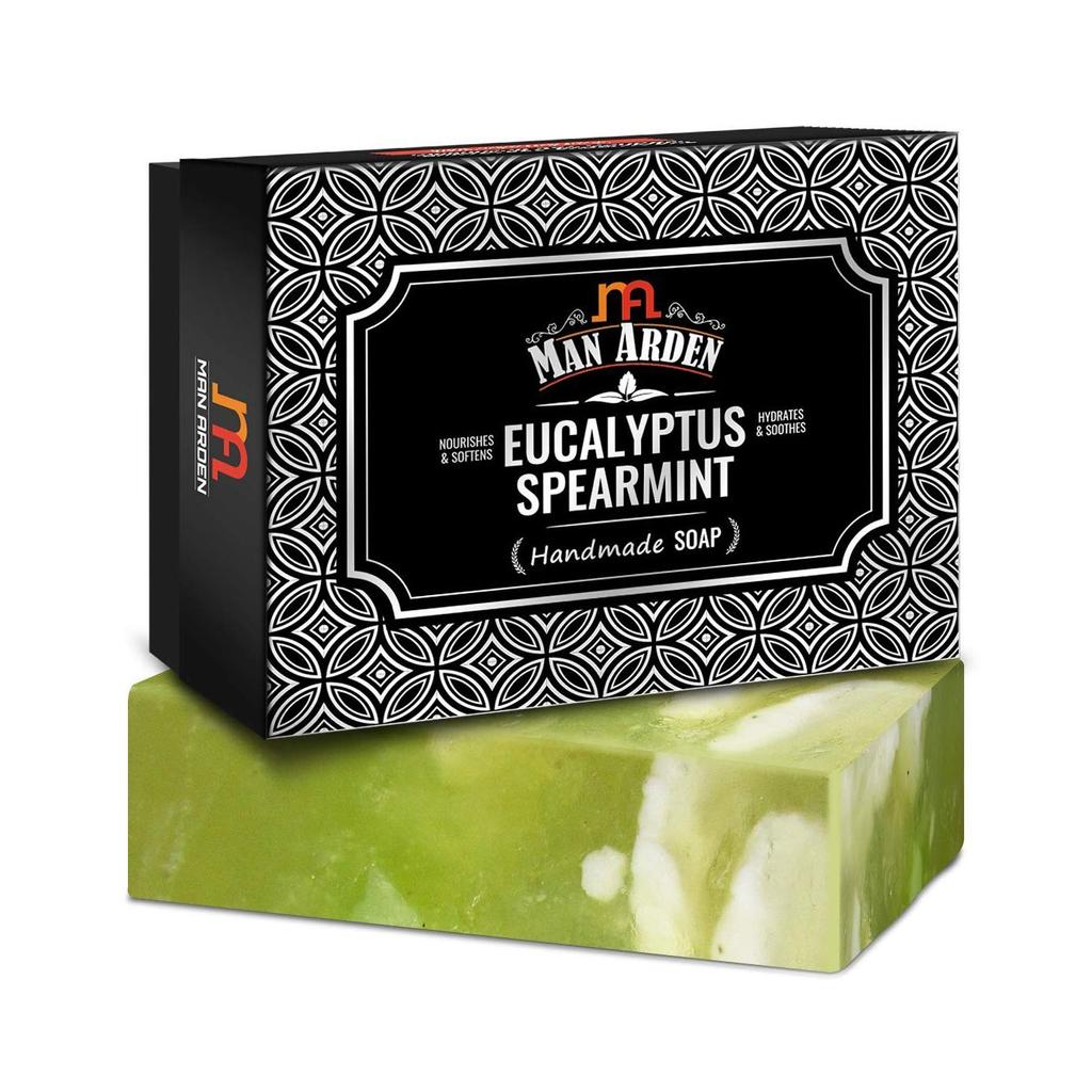 Moisturize the entire body with clean water. Gently rub the eucalyptus and mint soap into the skin and massage until foam is formed.. Spread the foam all over the body. Rinse off the soap and pat the skin dry.